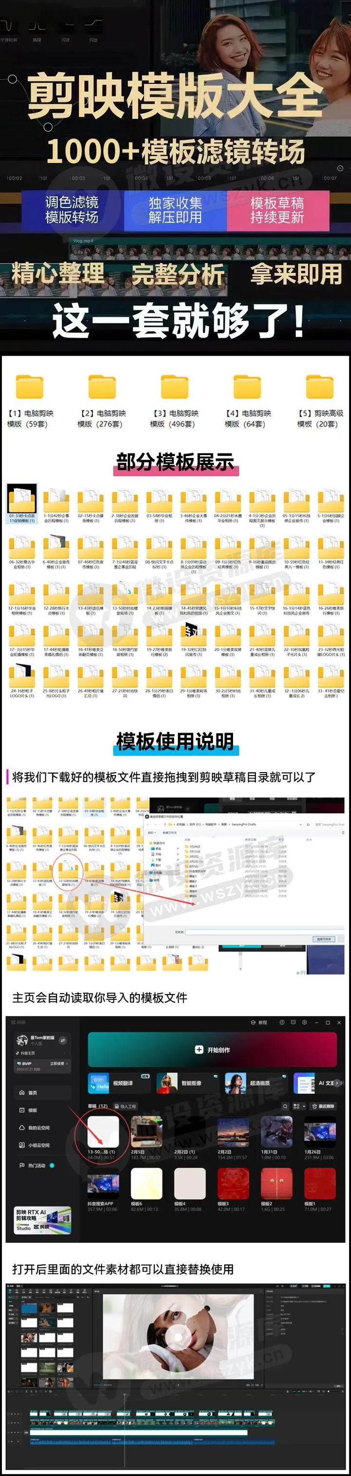 内附模板导入和使用教程,小白也能轻松上手,下图为模板草稿导入后编辑界面一览