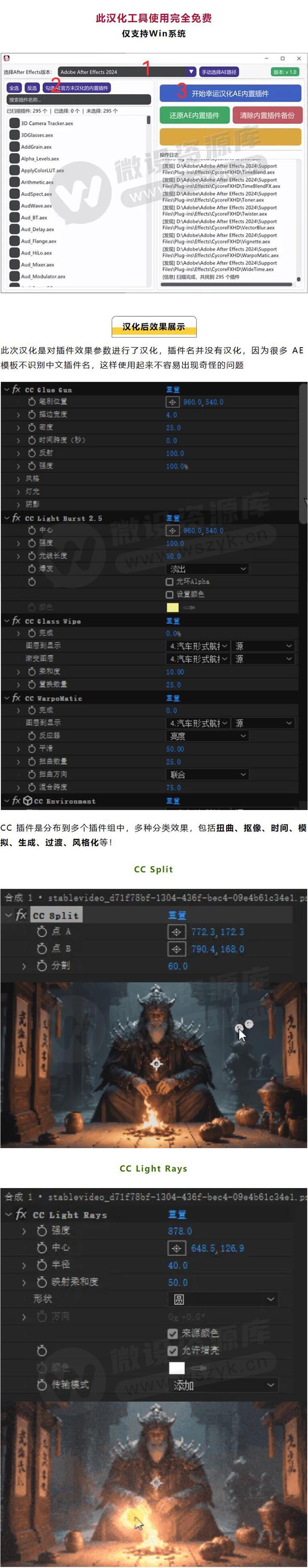 因此内置插件的汉化还是很有必要,本期设计软件库给大家带来一款AE内置插件汉化神器,支持最新AE 2026版本和之前的旧版本,只需一键即可完成汉化