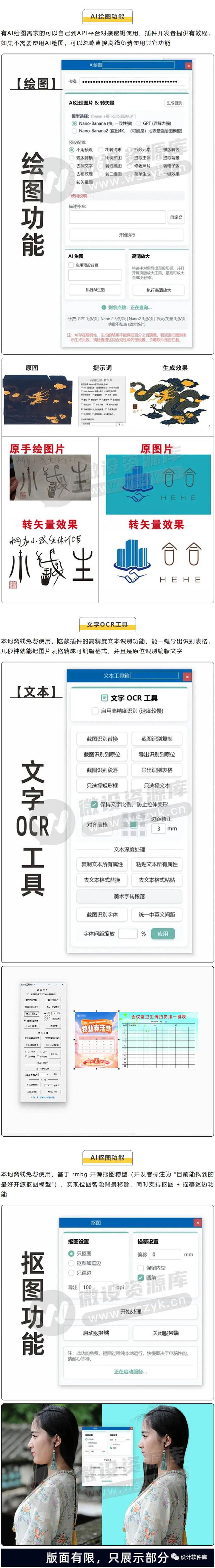 本期微设资源库又给大家收集整理了一款近期火遍设计圈的CDR神仙级插件,主打离线本地化运行,除AI绘图功能外,其它所有核心功能均基于本地模型与算法实现,无需联网即可免费使用