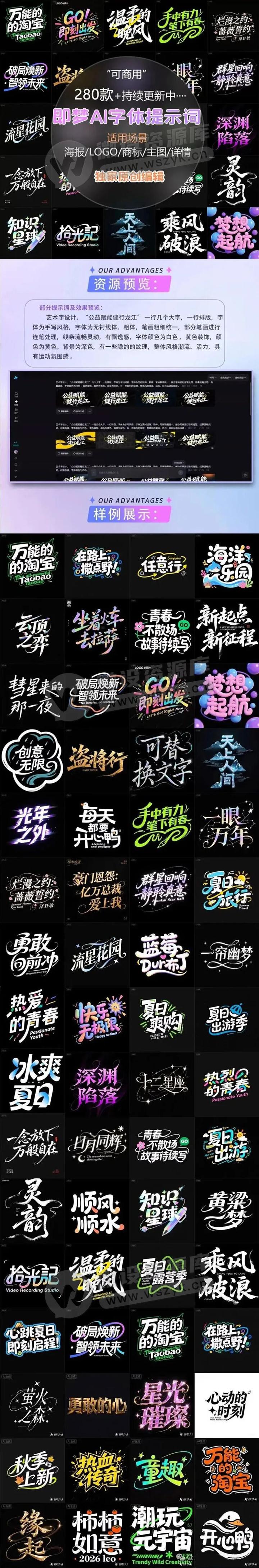 280款即梦AI艺术字体提示词库